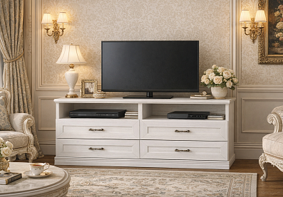 Тумба Кантри под телевизор с выдвижными ящиками Блан шене