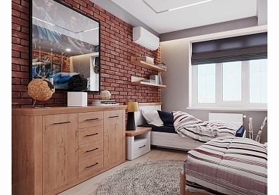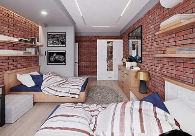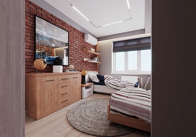 - Спальня будет гармонировать как с классическими оттенками белого, серого, коричневого, так и с текстурами — деревом, бетоном и кирпичом;