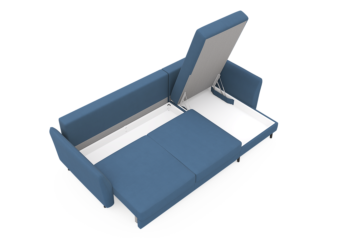 - Высота дивана с ножками: 75 см;